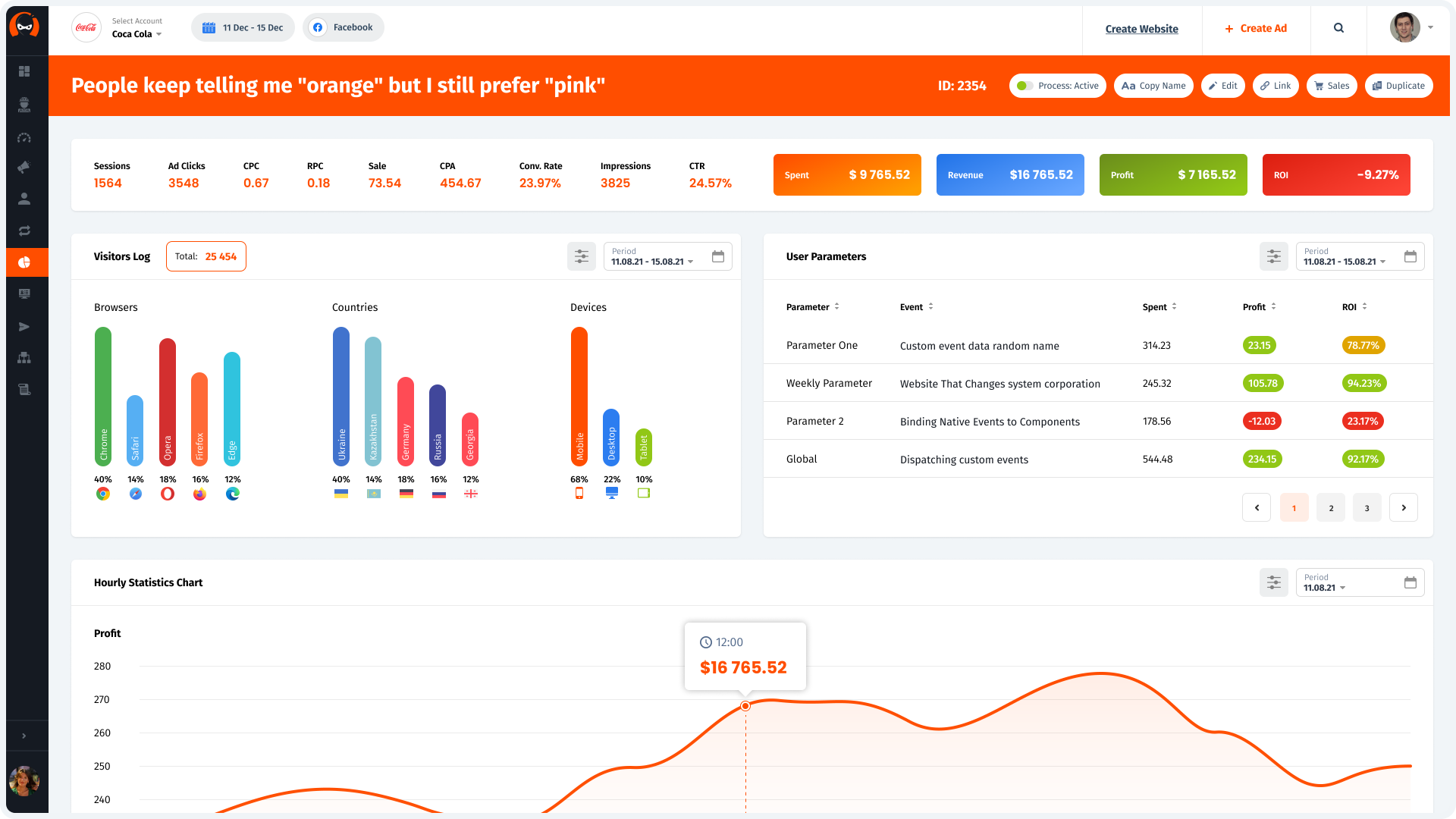 Powerful Analytics, exact profit for each advertisement in Real-Time